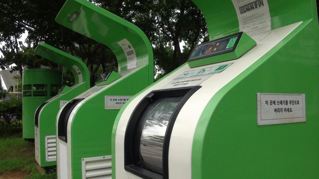 Пример за такъв модерен подход е град Сонгдо в Южна Корея – нов и модерен град, създаден специално да бъде „умен“. Там няма сметосъбиращи камиони. Вместо това, боклукът се изхвърля в специални кофи в сградите, откъдето автоматично се засмуква чрез подземни тръби и се изпраща директно до преработвателен център. Там отпадъците се сортират – рециклируемите се рециклират, органичните се изгарят за енергия, а малка част отиват на сметище. Така се намаляват замърсяването, шумът и нуждата от служители – градът се обслужва от едва седем души.